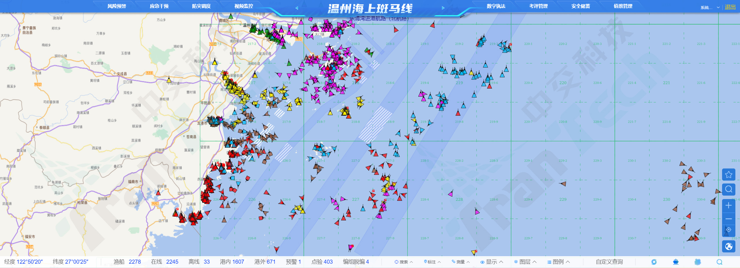 針對海上漁業(yè)安全風險人、船、環(huán)境、管理等因素,優(yōu)化構建風險預警、應急干預、數字執(zhí)法、安全儲蓄、考評管理五大應用場景。聚焦系統(tǒng)融合、綜合集成,以場景化的多業(yè)務協同應用為抓手,重點圍繞“海上斑馬線”優(yōu)化升級、漁民安全教育和應急指揮能力提升等方面,使海上漁業(yè)管理“看得見、通得上、叫得應、管得住”,進一步提升漁業(yè)安全生產管理和服務工作。
